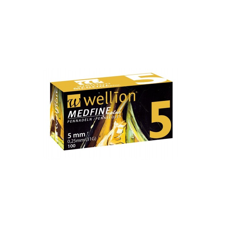 Голки для шприц-ручок Wellion MEDFINE plus одноразові стерильні, універсальні, 31G (0,25 х 5 мм), 100 штук