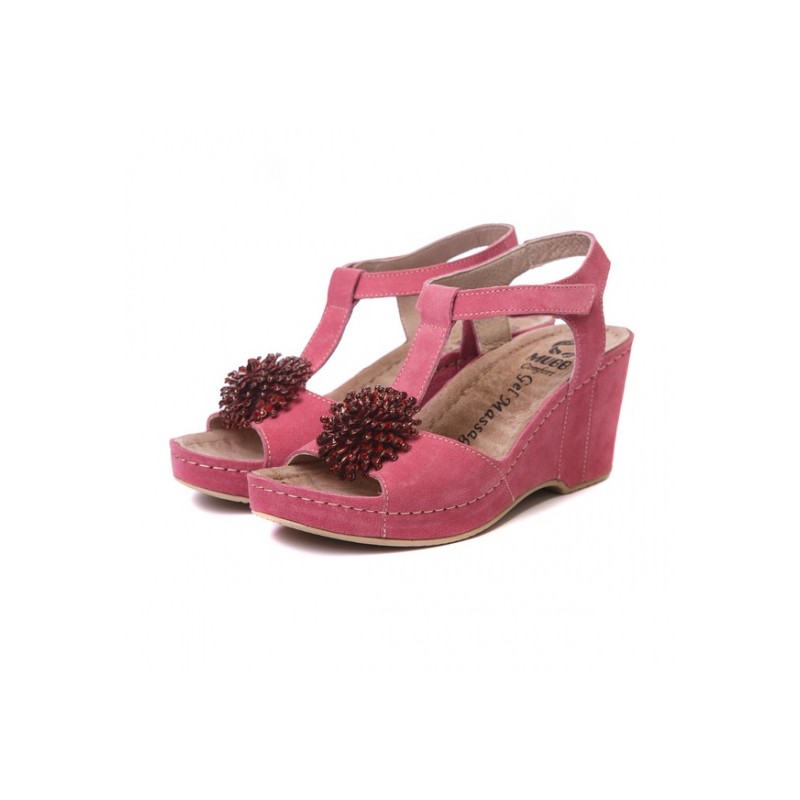 Верх взуття виконаний з м'якого, високоякісного велюру. Замшева устілка анатомічної форми виконана на основі гелю. Її поверхня має масажний ефект і має високі амортизаційні властивості. У методиці виготовлення даної моделі використовується клейово-прошивний метод, який робить взуття міцним та зносостійким. Підошва з поліуретану з протиковзким ефектом.