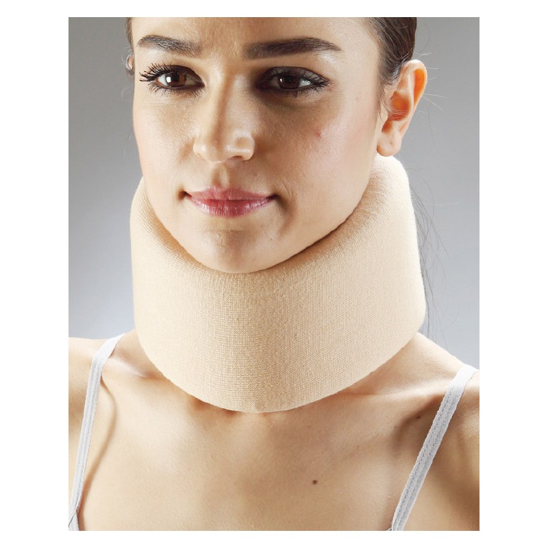 Бандаж виготовлений у вигляді плоскої стрічки з гіпоалергенного пінополіуретану середньої щільності. Для зручності носіння та догляду на середню частину виробу додається муфта з бавовняного трикотажу. Виріб надає розслабляючий і зігріваючий ефект на м'язи шиї.