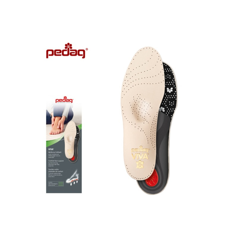 Для підтримки поздовжнього та поперечного склепінь стопи устілка має міцний пластиковий каркас анатомічної форми та вбудований пелот. Додаткову амортизацію п'яти здійснює латексна вставка. Покриття устілки виготовлене з високоякісної натуральної шкіри. Viva забезпечує відмінний мікроклімат стоп завдяки прошарку активованого вугілля та антибактеріальному просоченню Sanitized®. Експлуатація устілки у взутті на підборах понад 4 см не рекомендується.