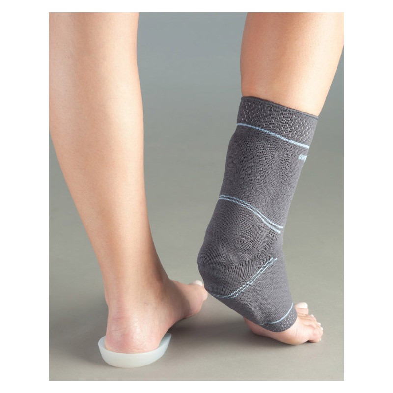 Гомілковостопний бандаж Aurafix 409 виготовлений з еластичного тканого матеріалу, який добре пропускає повітря і не дозволяє шкірі потіти. По обидва боки ахіллового сухожилля знаходяться дві силіконові подушечки, що захищають його.