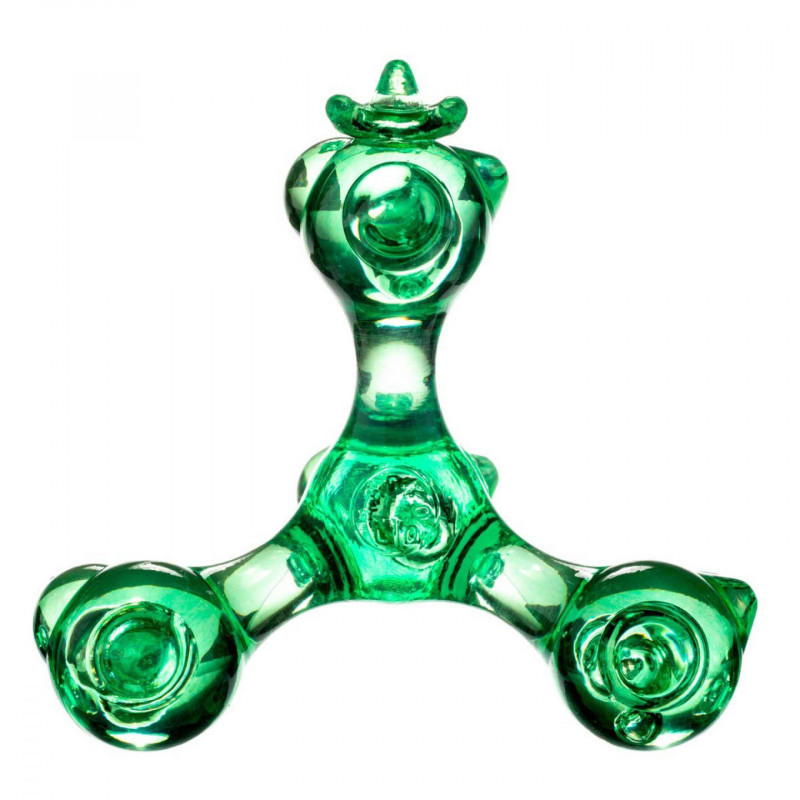 Масажер "Фараон" - це експериментально підібрана геометрична фігура, пропорції якої практично відповідають принципу золотого перерізу. По своїй будові форма масажера нагадує молекулу газу метану, який є основою всесвіту. Додаткові виступи на масажних поверхнях - горбки різних форм (у вигляді півсфер і конусів із закругленою вершиною) перетворюють кожну кулю на злагоджену піраміду. Завдяки цим виступам зростає ефективність якісних властивостей масажера. Виступи утворюють поєднання складних лінз, які, у свою чергу, фокусують світлоэнергетичні пучки і направляють їх на масажовану поверхню. Вершину масажера вінчає "корона", що посилює неповторність масажера. Її форма в мініатюрі дублює тетраедр, одна з ніжок якого повернена таким чином, що усі виступи знаходяться в одному напрямі.