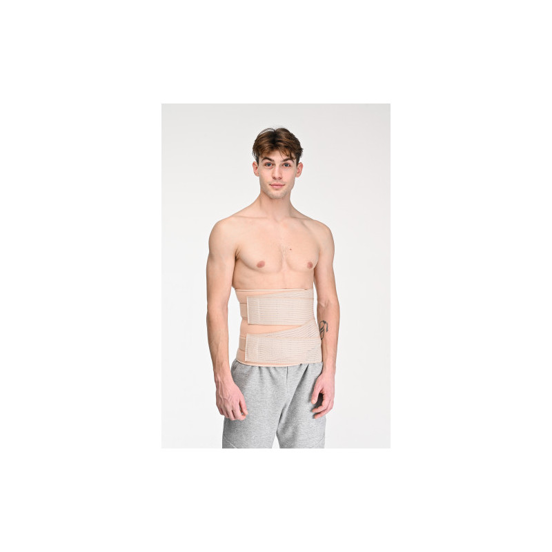 Еластична компресія бандажу дозволяє підтримувати нормальний тонус передньої черевної стінки при підвищенні внутрішньочеревного тиску. Охороняє пошкоджену черевну стінку від перенапруги, що забезпечує стабільність формування післяопераційного рубця і створює оптимальні умови для процесу загоєння.