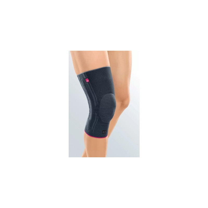 Спеціальне силіконове кільце охоплює надколінок. Силіконові рельєфні елементи на внутрішніх бічних поверхнях бандажа не дозволяють виробу сповзати. Дуже еластичний, дихаючий матеріал, зв'язаний за технологією Clima Comfort, з системою активного виведення вологи. Comfort Zone - спеціальна технологія в'язки забезпечує щільний контакт виробу з тілом і не чинить надлишкового тиску на ділянку підколінної ямки. Максимальне розвантаження надколінника завдяки спеціальному рельєфу внутрішньої частини силіконового кільця. Для пацієнтів з широким стегном є модель тілесного і сріблястого кольорів. Genumedi extrawide сріблястого і тілесного кольору мають верхню еластичну стрічку шириною 5см.