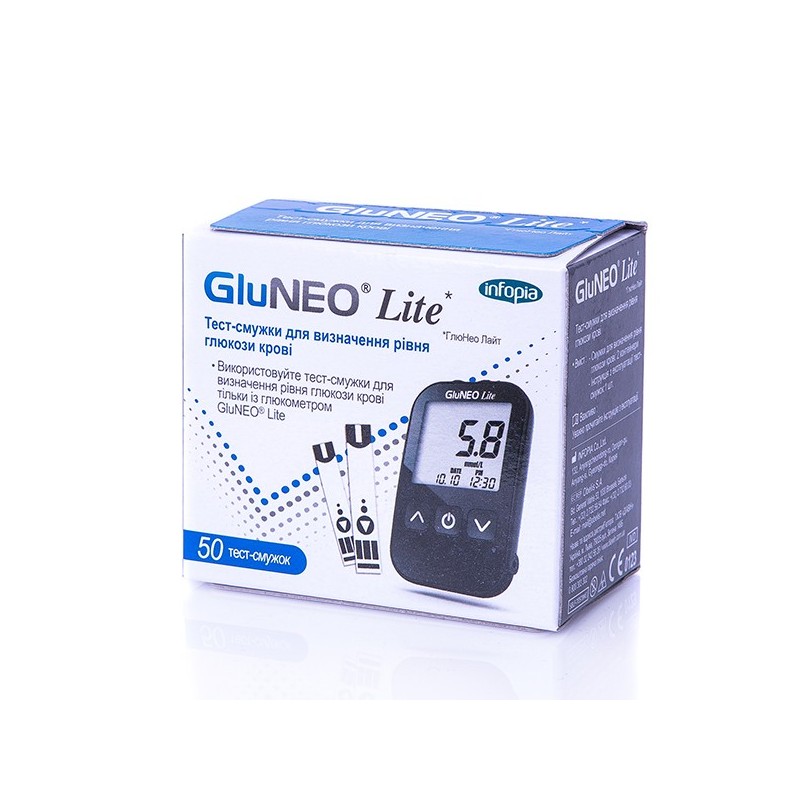 Тест-смужки для визначення глюкози у крові GluNEO Lite® використовуються разом із глюкометром GluNEO Lite® для вимірювання рівня глюкози у крові.