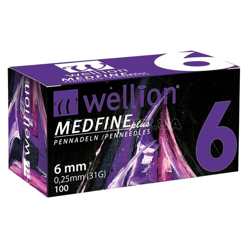 Голки для шприц-ручок Wellion MEDFINE plus одноразові стерильні, універсальні, 31G (0,25 х 6 мм), 100 штук